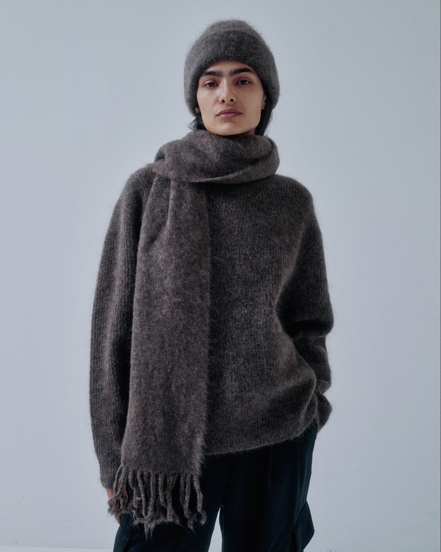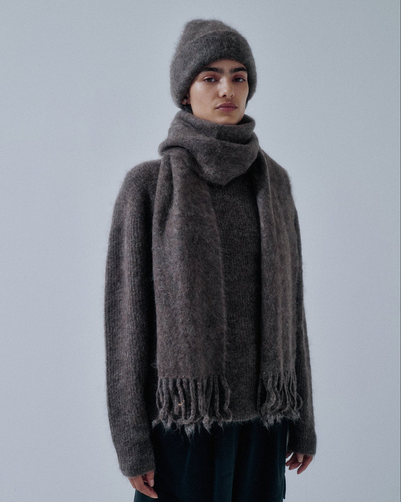 Us Pre Brushed Mohair Scarf in Ash Brown