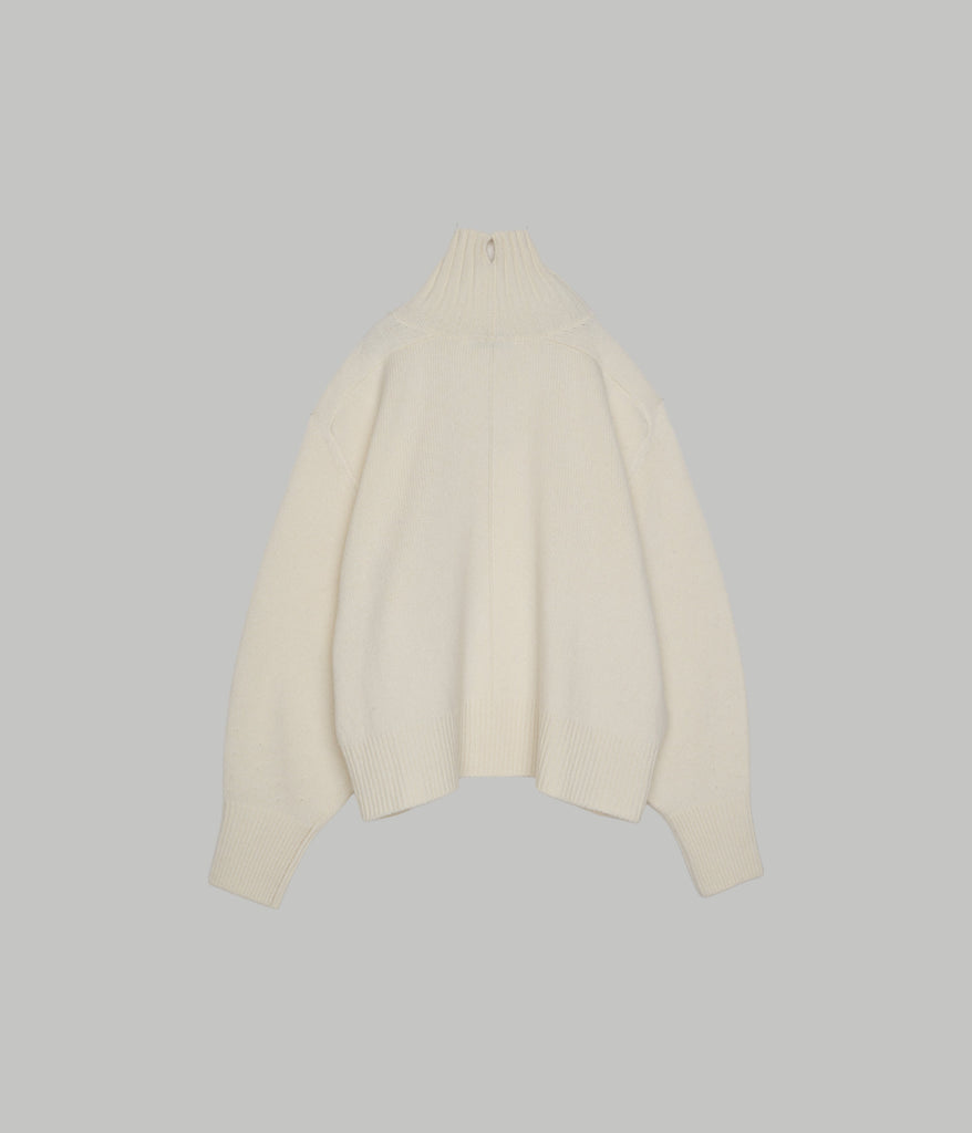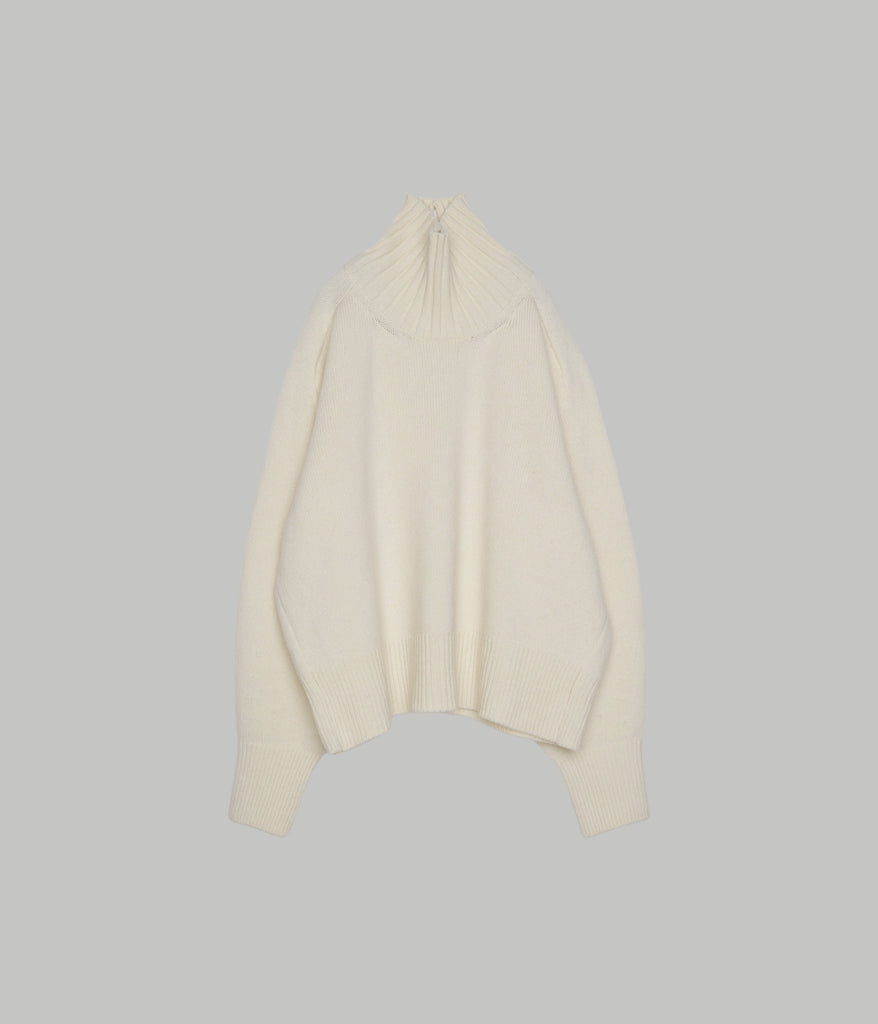 An updated edition of SD’s beloved High Collar Sweater, reimagined with refined proportions and thoughtful detailing. The boxy body is paired with sculptural volume sleeves, while the length has been slightly shortened for a more balanced silhouette. The sleeves are redesigned with epaulet detailing, adding subtle structure. A higher neckline is finished with a back slit, allowing for ease of movement and comfort around the neck. Effortless to style with any bottom, it stands confidently on its own as a complete look. From spinning to knitting and finishing, every step is carried out in Japan—an entirely Made in Japan knit crafted with integrity and care.