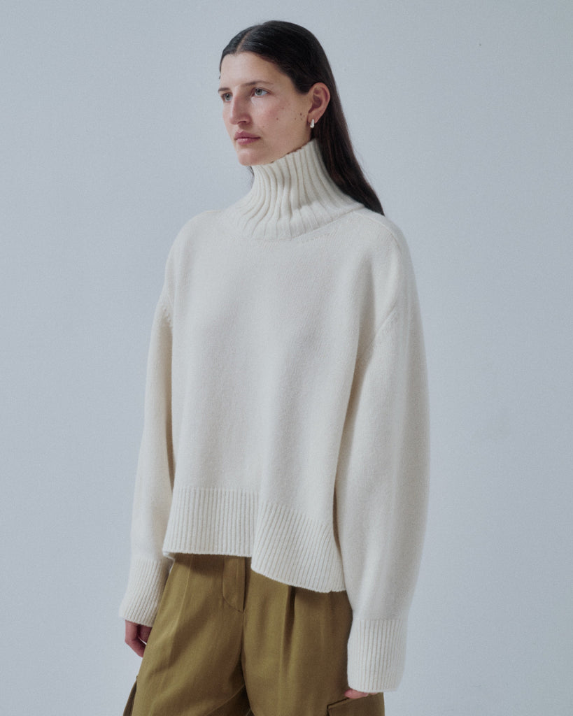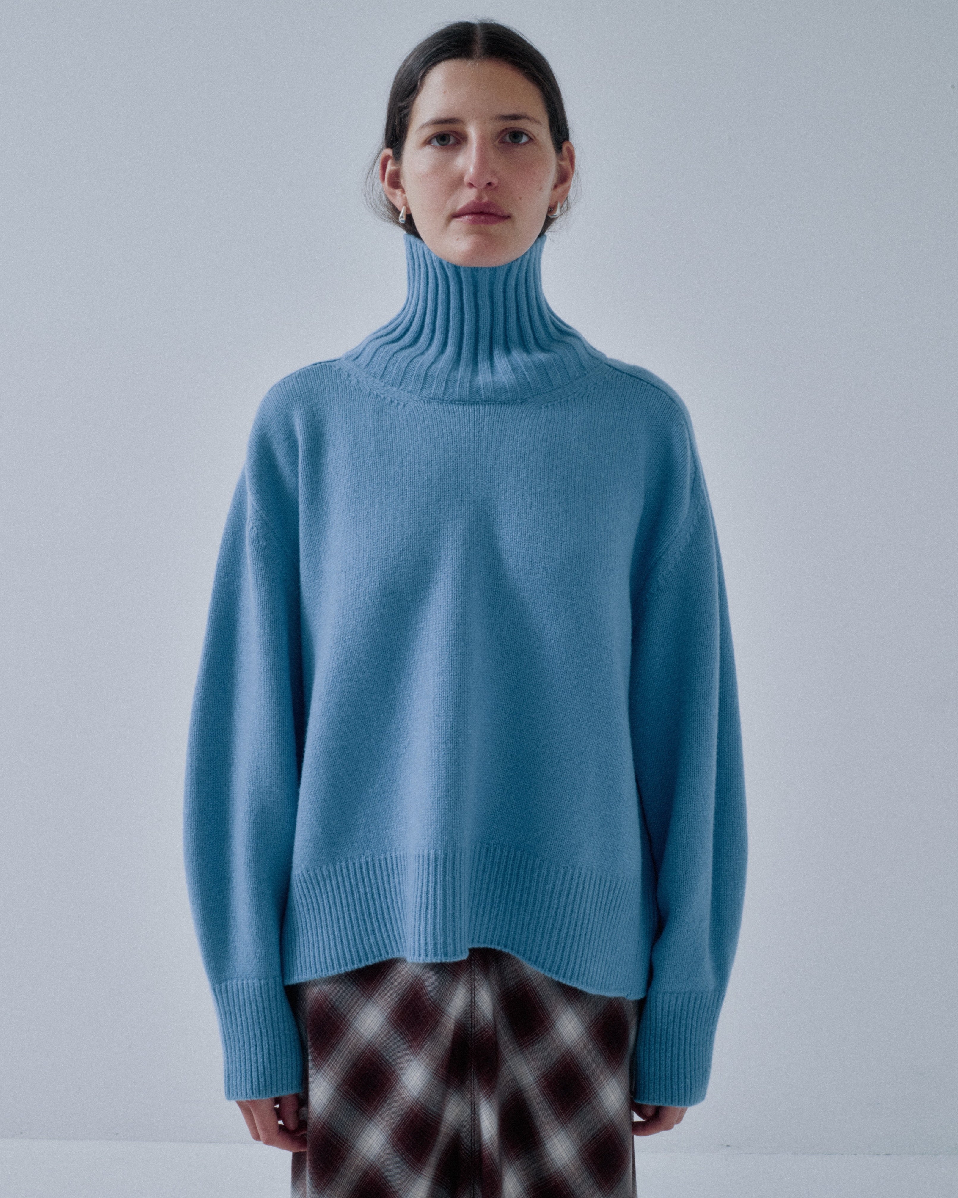 Knit in Japan using two strands at 5-gauge, it offers a plush, softly voluminous texture while remaining light through its natural ability to trap air. The result is warmth with an airy ease that's rich in touch yet gentle in weight.