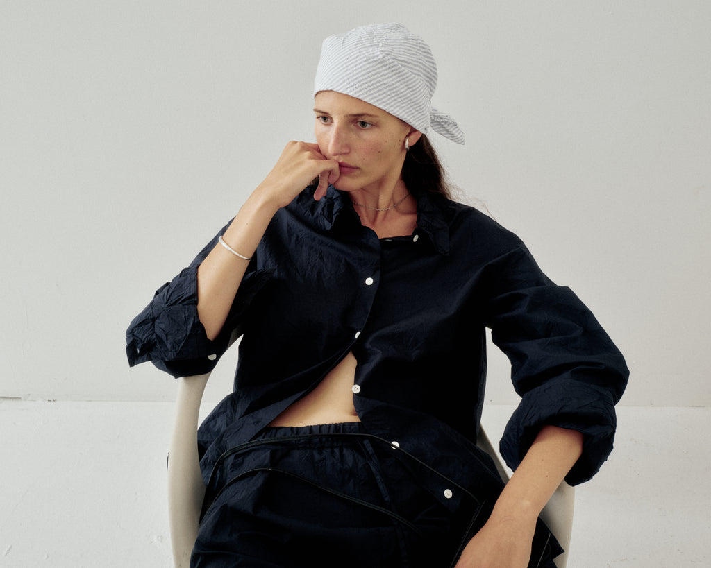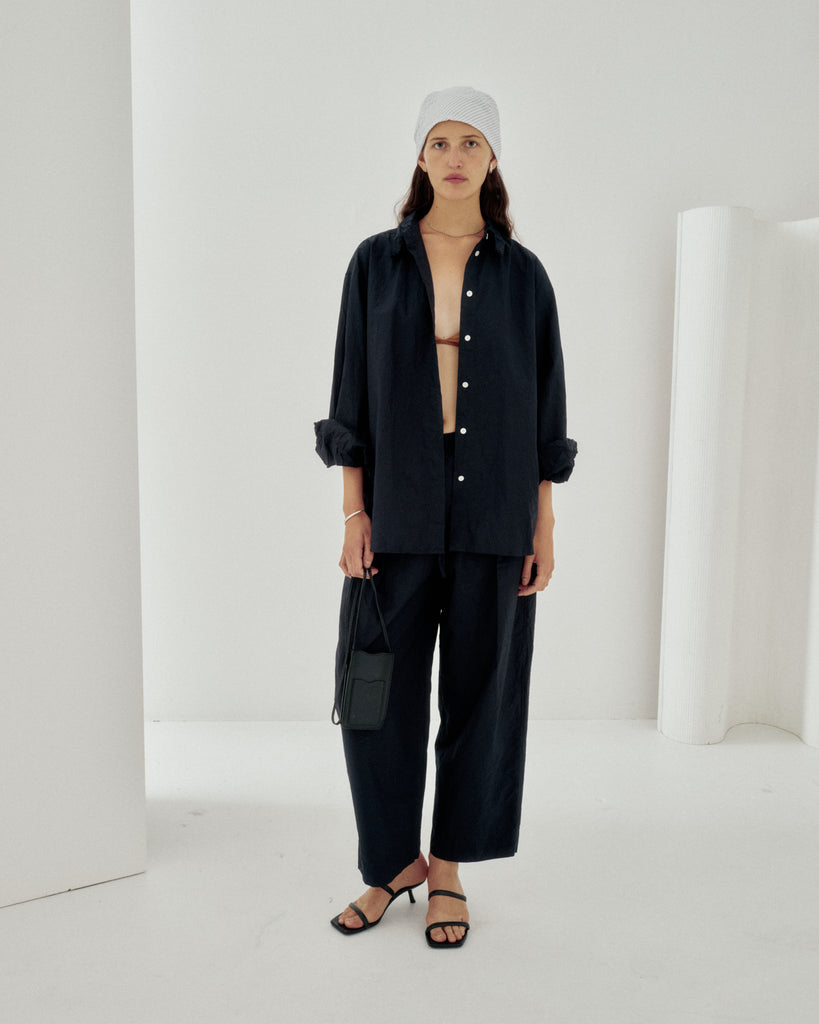 Crinkled Oversized Shirt in Navy