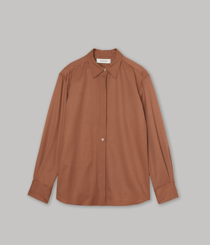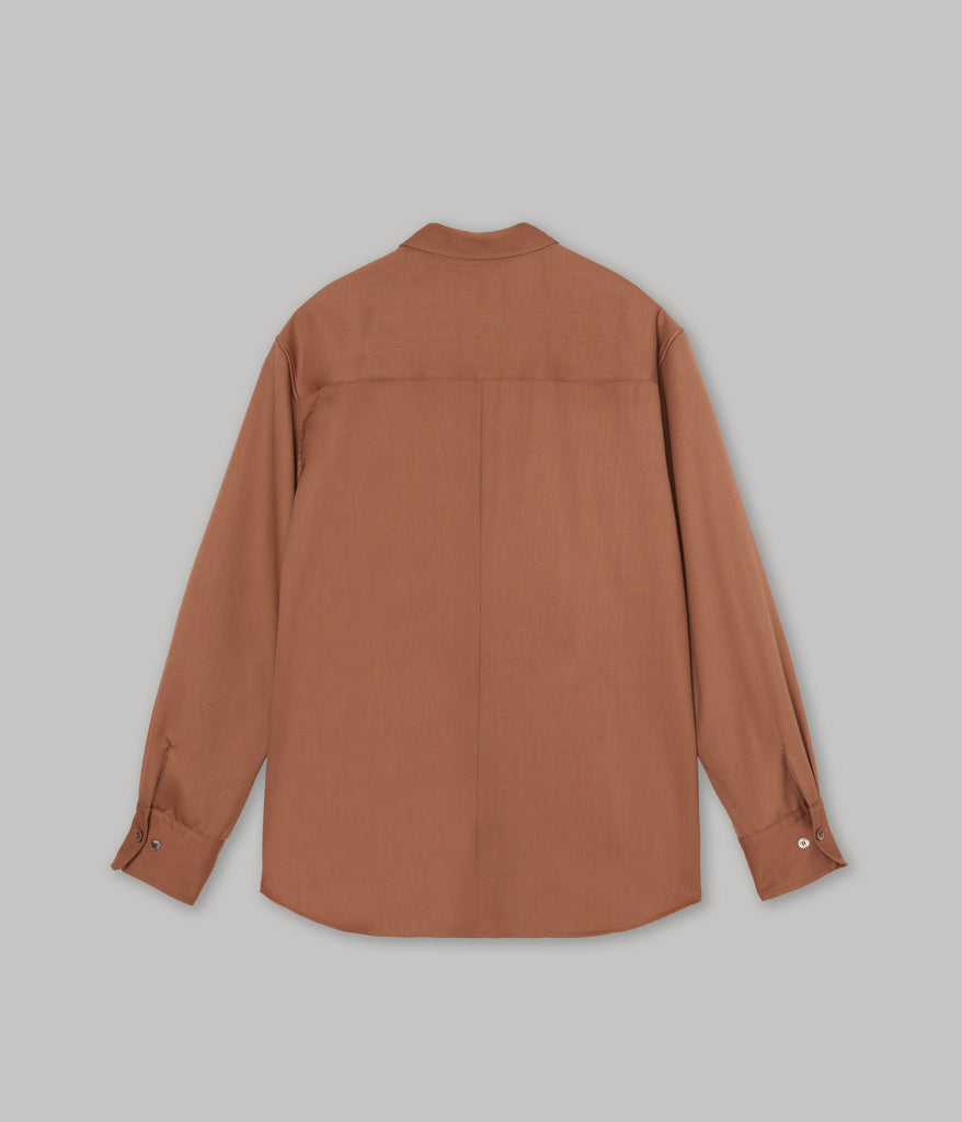A slim shirt made from soft washable wool. The body is a slim fit that contours closely to the body without darts. A sleek placket opening is complemented by a waist button accent. This wool shirt blends perfectly into autumn and winter attire.