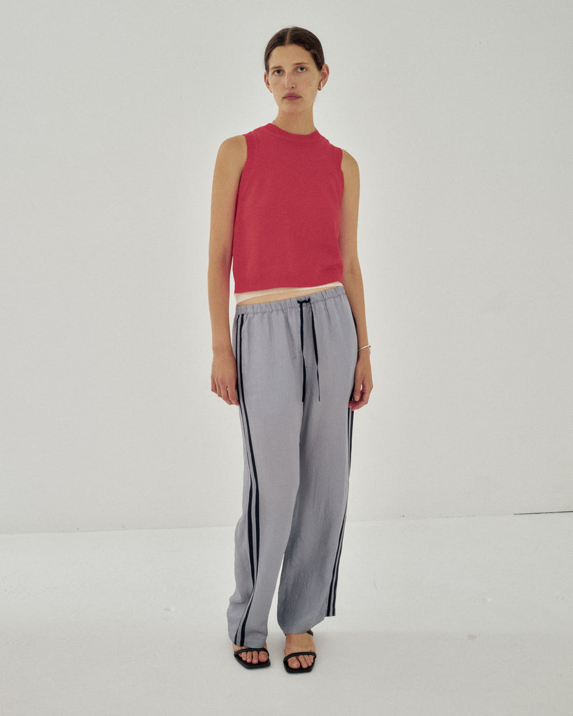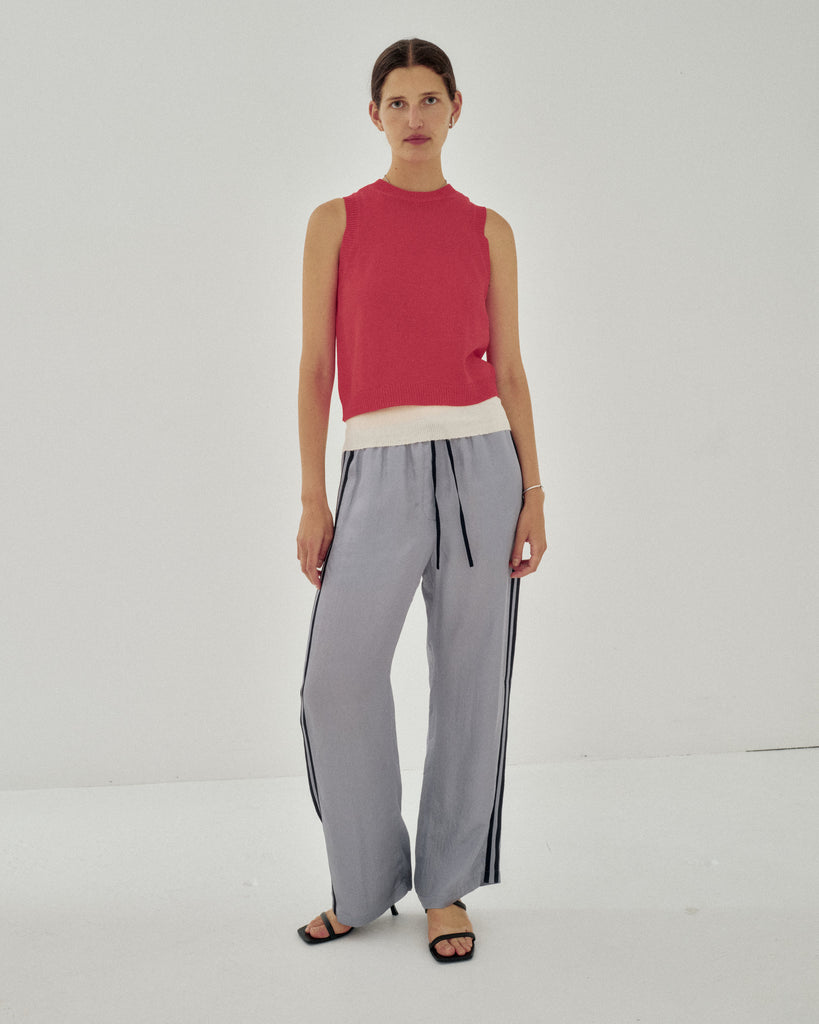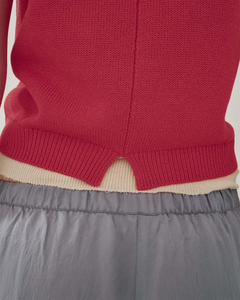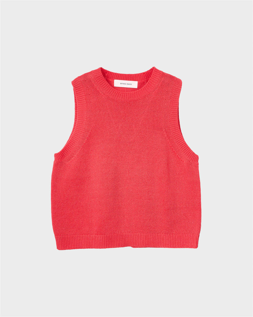 This cropped knit tank is crafted from low-gauge BCI-certified cotton, offering a thick yet breathable summer knit. It can be worn alone for a subtle summer look or layered as an inner piece to enhance your styling.