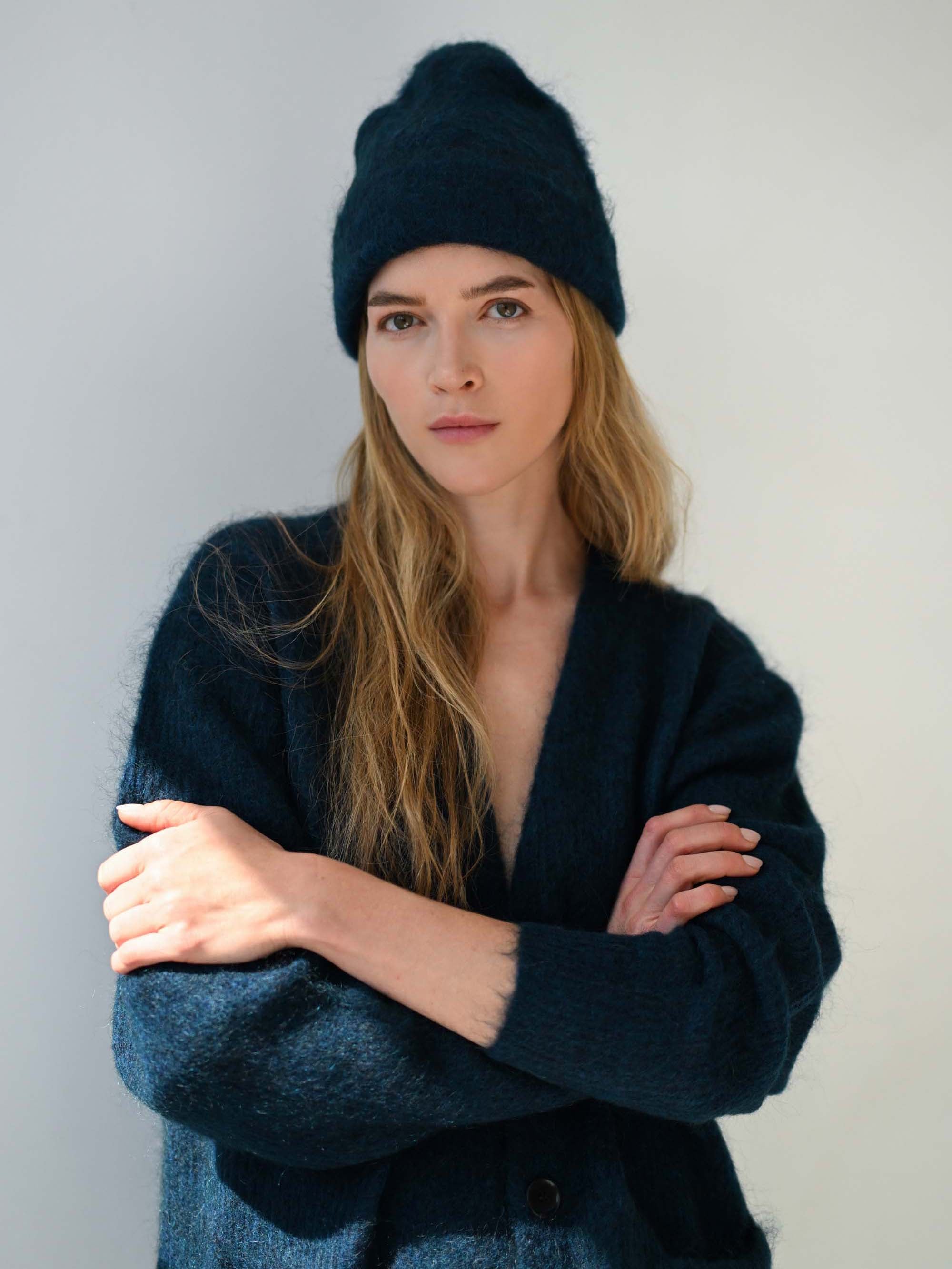 A casual beanie made from feminine materials. Light and fluffy, with a soft texture, it serves as a stylish accent to your look.
