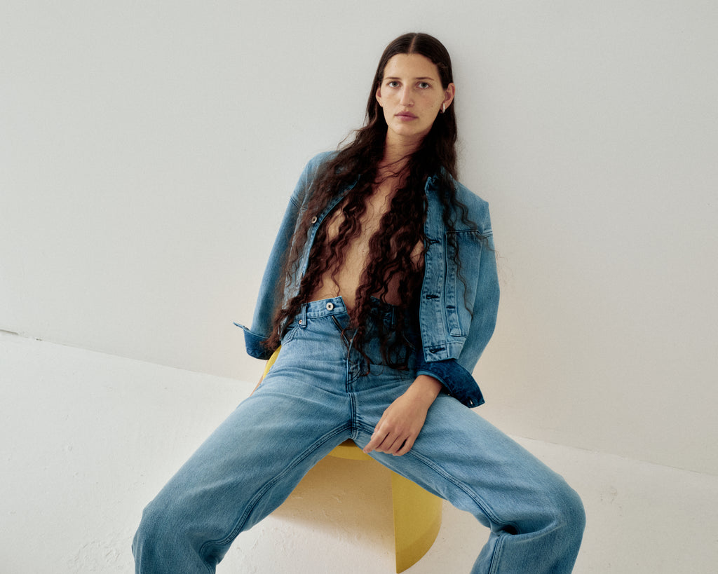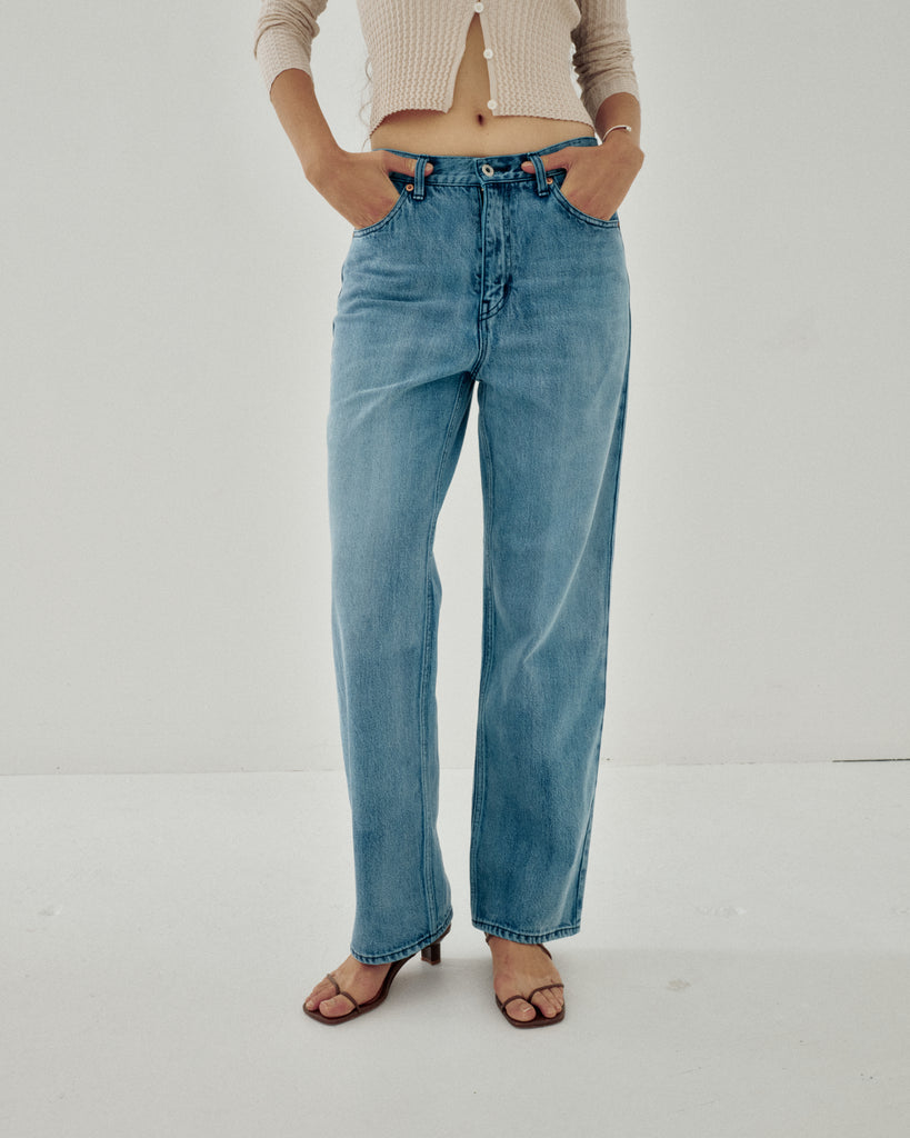 Regular Fit Denim x Cropped Jacket in Overdyed Organic Cotton Aqua Denim