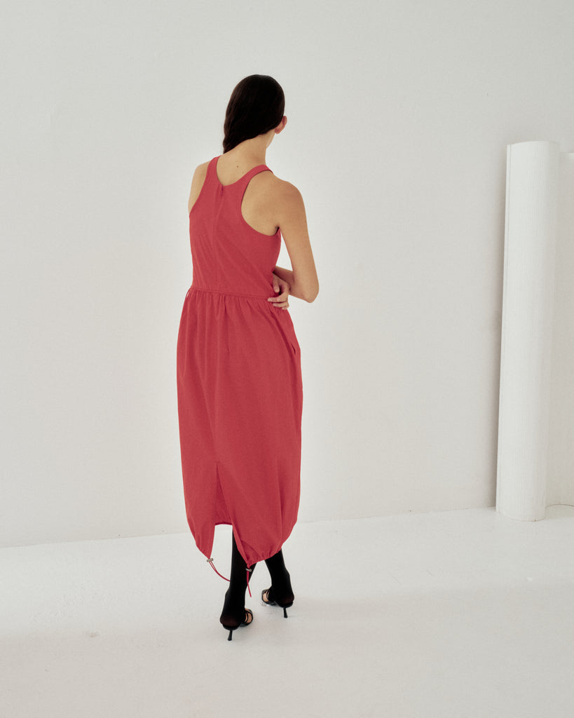 Balloon Tank Dress in Vermilion Organic Cotton Poplin