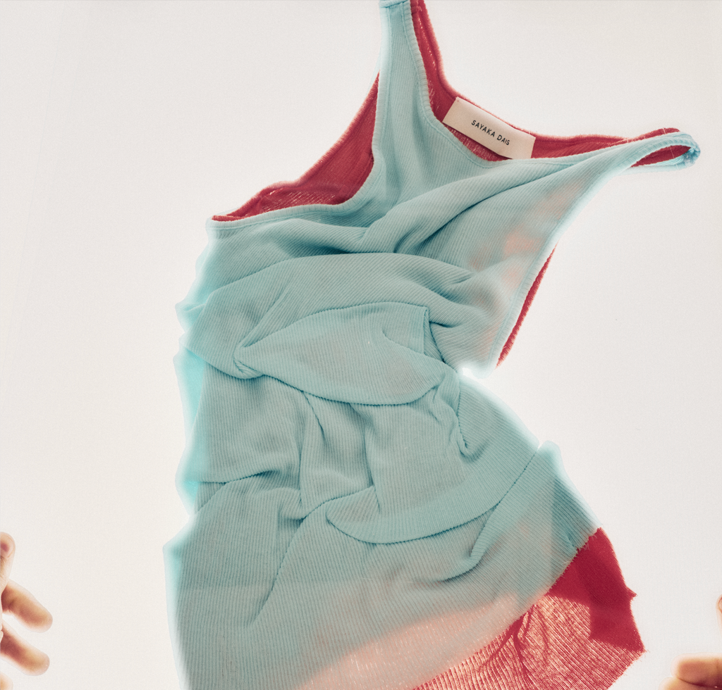 Sheer Rib Tank Dress in Cyan and Poppy Red Organic Cotton